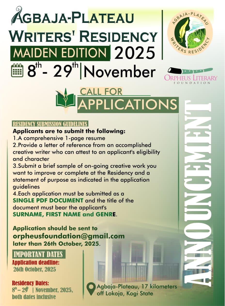 #AgbajaPlateauWritersResidency #OrpheusLiteraryFoundation #CallForApplications #NigeriaWriters #CreativeRetreat #LiteraryArts