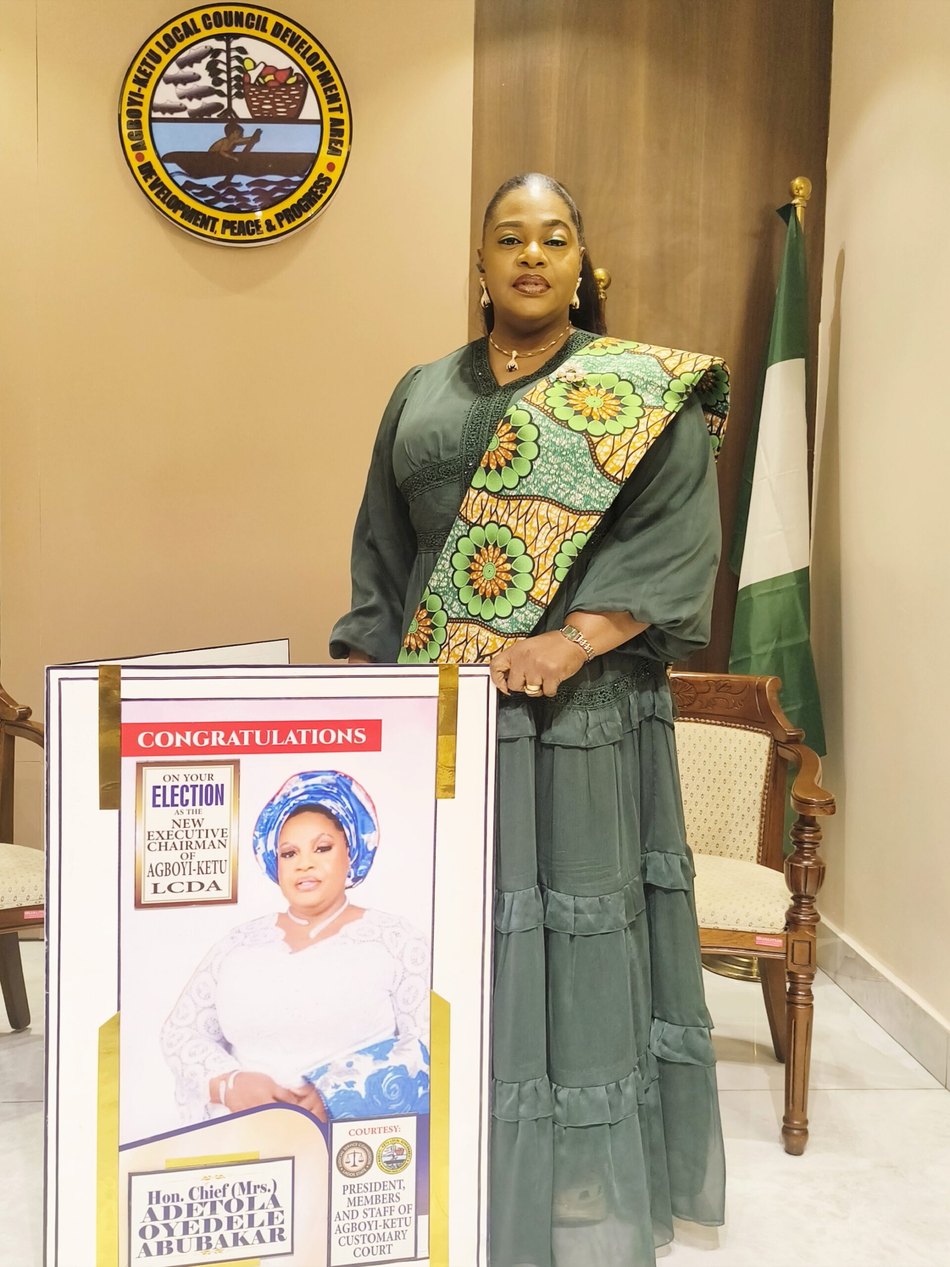 It was a courtesy call from the leaders of the Agboyi-Ketu Customary Court to the Executive Chairman. The President of the Customary Court expressed felicitations of the Local Council’s Judiciary with Hon. Adetola Adunni Abubakar, congratulating her on her outstandingly successful elections and the great work she has already begun to do at Agboyi-Ketu LCDA. Mr. Adedoyin and his members of the Customary bench are in tune with the new lease of life at Agboyi-Ketu and have come to encourage the Chairman to execute her plans to take Agboyi-Ketu to greater heights!