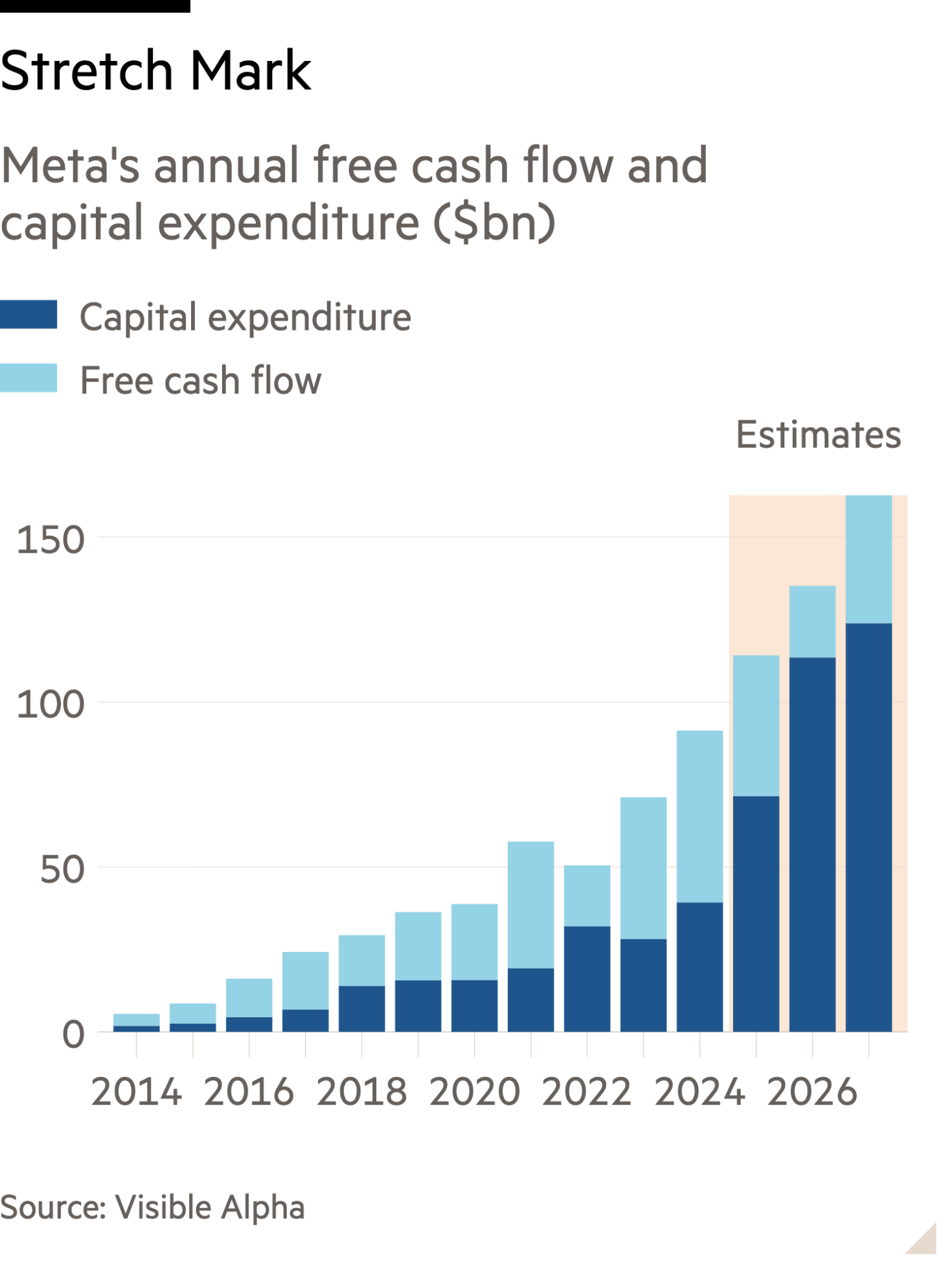 Financial analysts estimate that even if Meta were to spend $500 billion on AI development over the next five years, it would still generate about $400 billion in cumulative free cash flow, according to Visible Alpha.